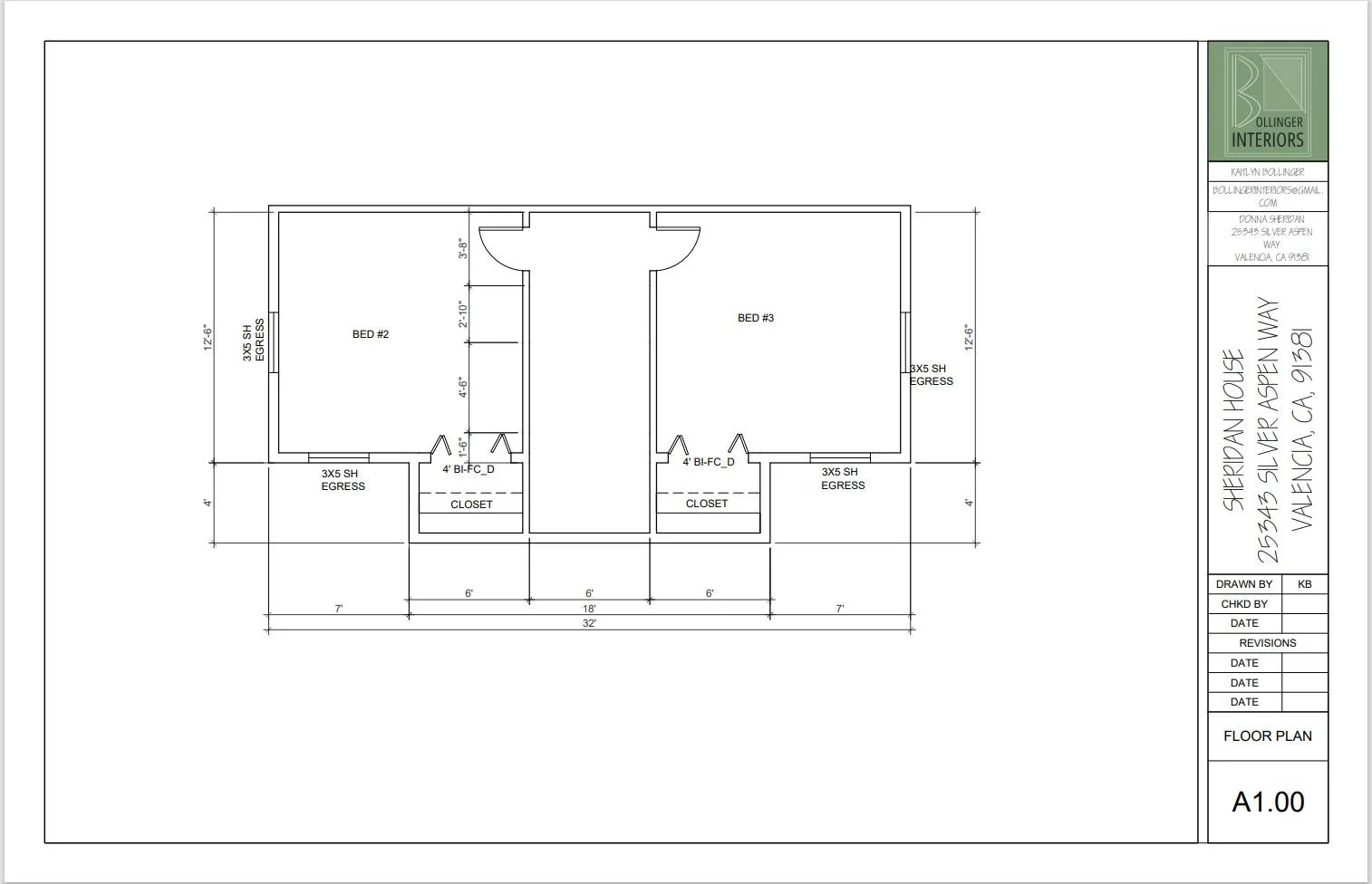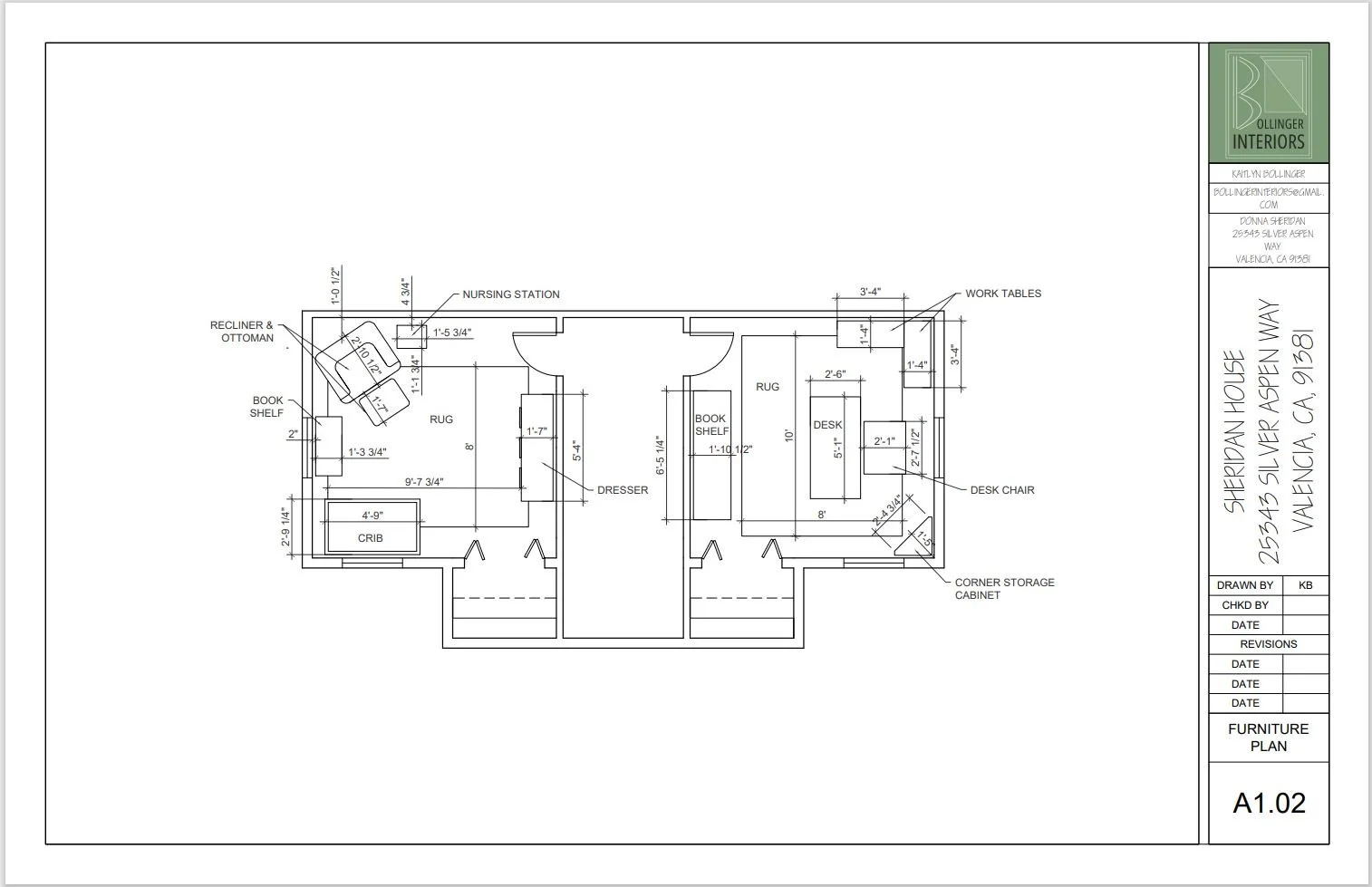 Floor plan and Furniture plan of two bedrooms in a gothic style farmhouse along with a mood board and material board.