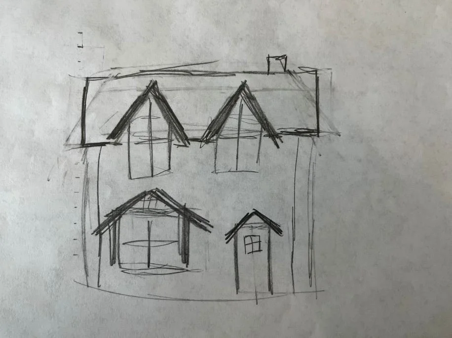 Construction document set depicting a 380sqft tiny home in the south of England. Preliminary sketches and mood board included.