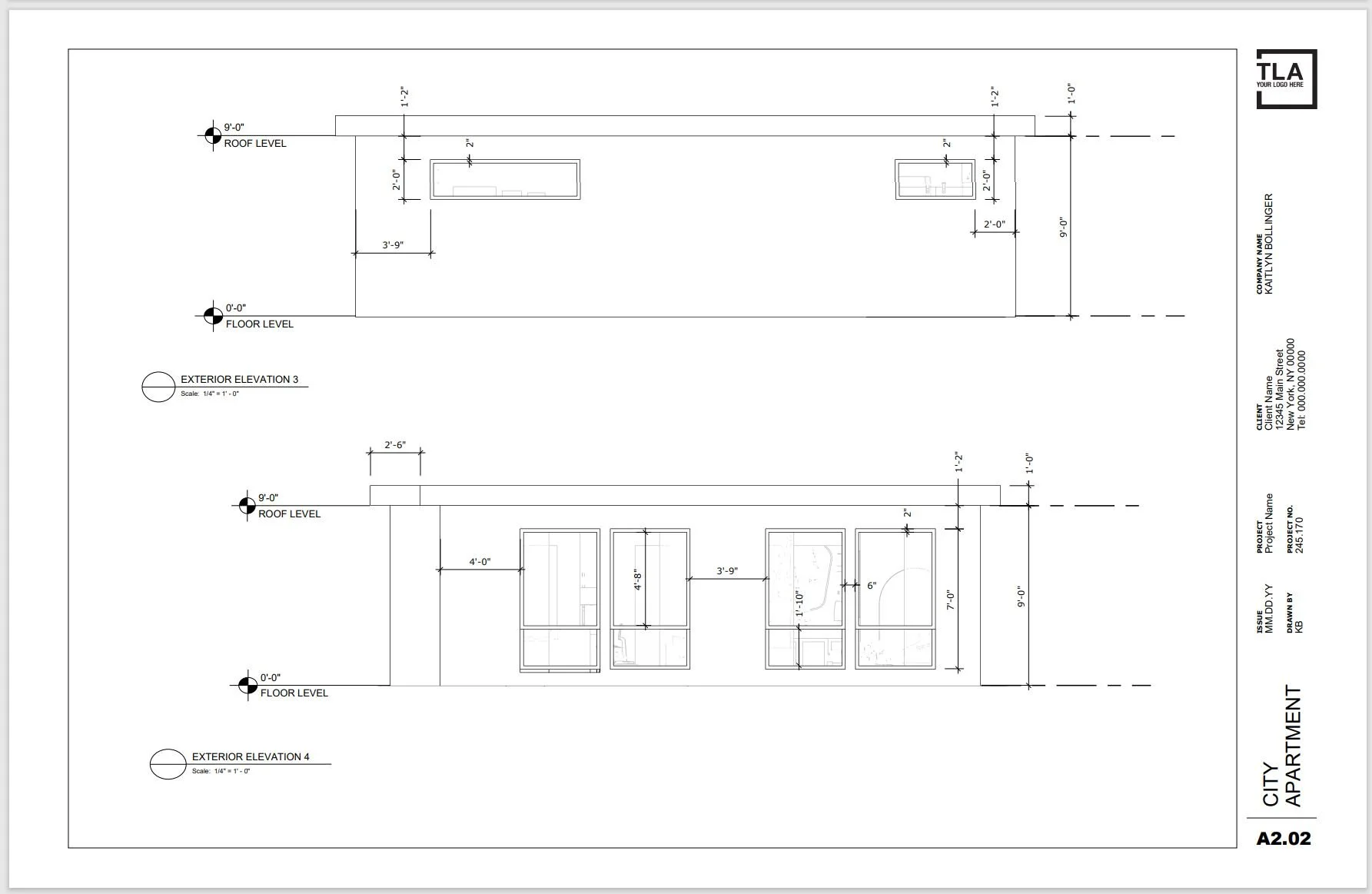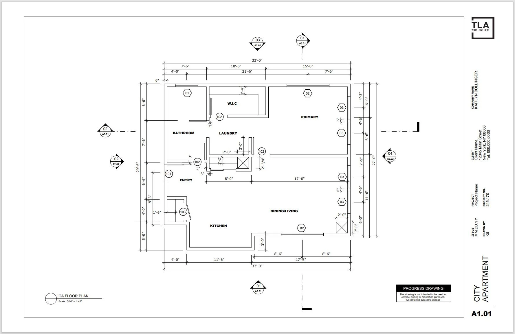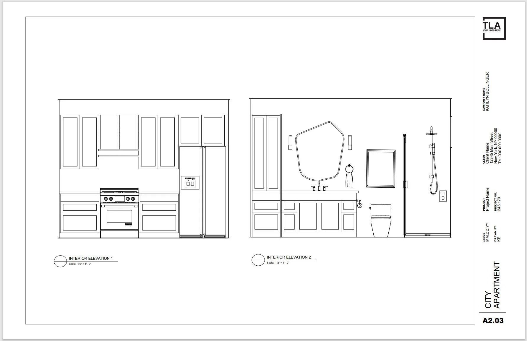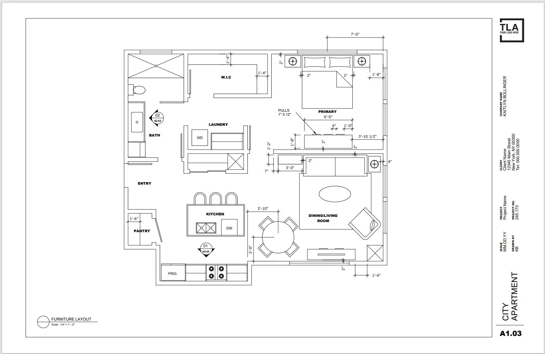 Construction document set of a one bedroom apartment, interior perspectives and axonometric view included, done in SketchUp and LayOut.